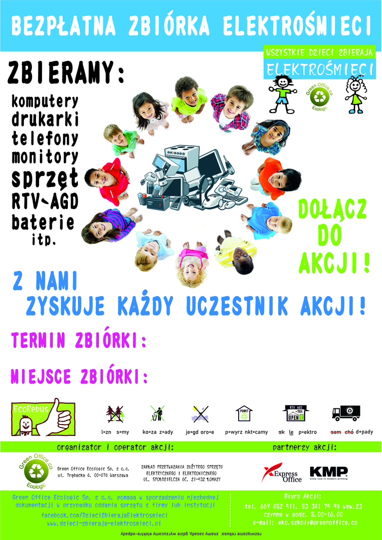 Praktyczną stroną jest zbiórka elektrośmieci prowadzona we współpracy z placówkami oświatowymi na terenie całego kraju. W zamian za uzbierane kilogramy szkoły otrzymują nagrody rzeczowe w postaci materiałów biurowych i tuszy lub tonerów.