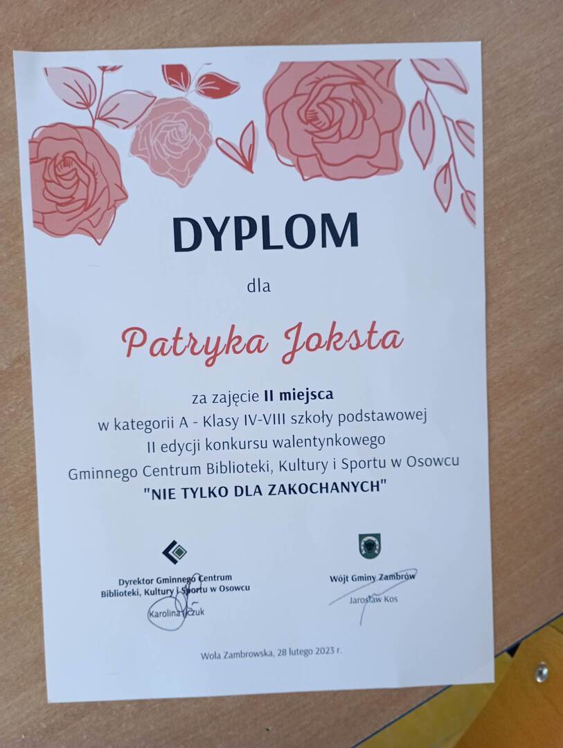 We wtorek 28 lutego 2023 roku w Świetlicy Wiejskiej w Woli Zambrowskiej odbyło się podsumowanie II edycji konkursu walentynkowego Nie tylko dla zakochanych.