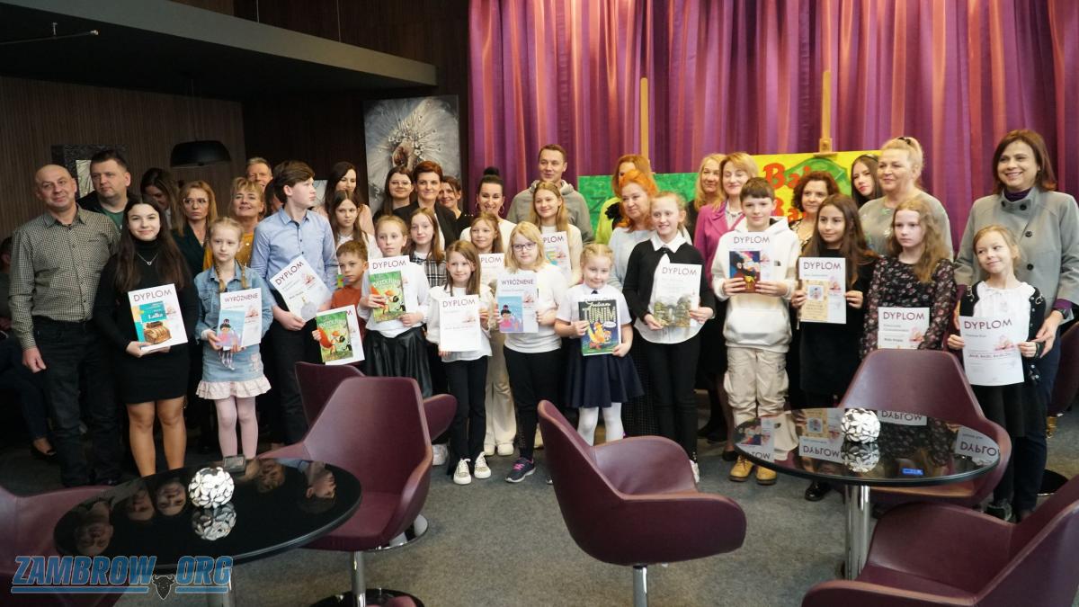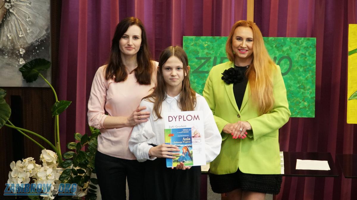 Dziś poznaliśmy laureatów konkursu wśród których znalazła się Zosia Grosfeld zdobywając trzecie miejsce w swojej kategorii. Zosia wraz z Panią Katarzyną Nowowiejską, która pzrygotowała ją do konkursu, wzięły udział w uroczystym rozdaniu nagrów w Centrum Kultury w Zambrowie.